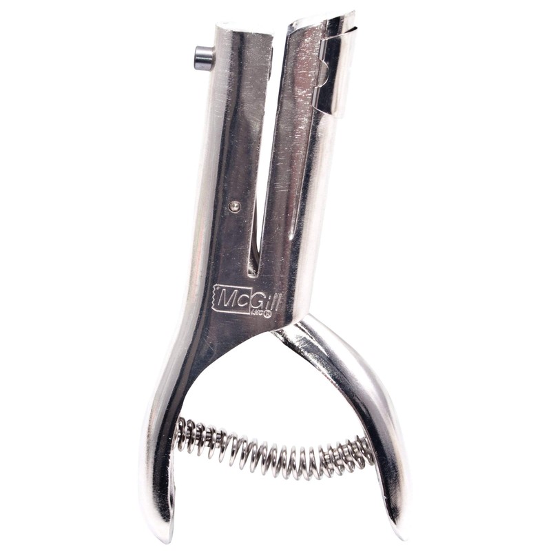 The McGill Utility Punch is constructed of all metal to provide exceptional durability and superior performance when a regular one hole punch just won't do. The 1/8 inch round hole punch features a 2 inch reach and can be used on paper, textiles, leather, foil, mat board, construction paper, and plastic. With a 20 sheet capacity, this nickel-plated hole punch has a built-in clipping receptacle to make clean-up easy. The McGill name is synonymous with quality, innovation and great designs that serve the office, school, craft, and industrial and specialty markets.