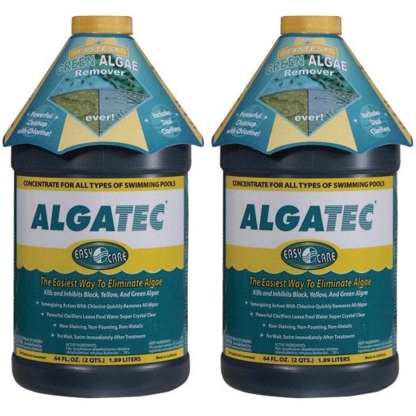 Algatec is a synergistic algaecide, water clarifier and chlorine booster for all types of swimming pools. Algatec helps improve water quality and swimmer comfort in swimming pools, spas and hot tubs. As an algaecide, Algatec kills green and yellow algae in 4 to 24 hours and eradicates black algae (fungus) in 7 to 10 days. Algatec also strongly prevents algae growths in swimming pools. Algatecs clarifiers flocculant to create ultra-clear water in swimming pools. Its strong synergy with swimming pool, spas and hot tub sanitizers helps boosts chlorine and bromine effectiveness up to 600% while reducing sanitizer usage between 25% to 65%. Algatec is compatible with all salt cell systems and helps improve salt cell performance.