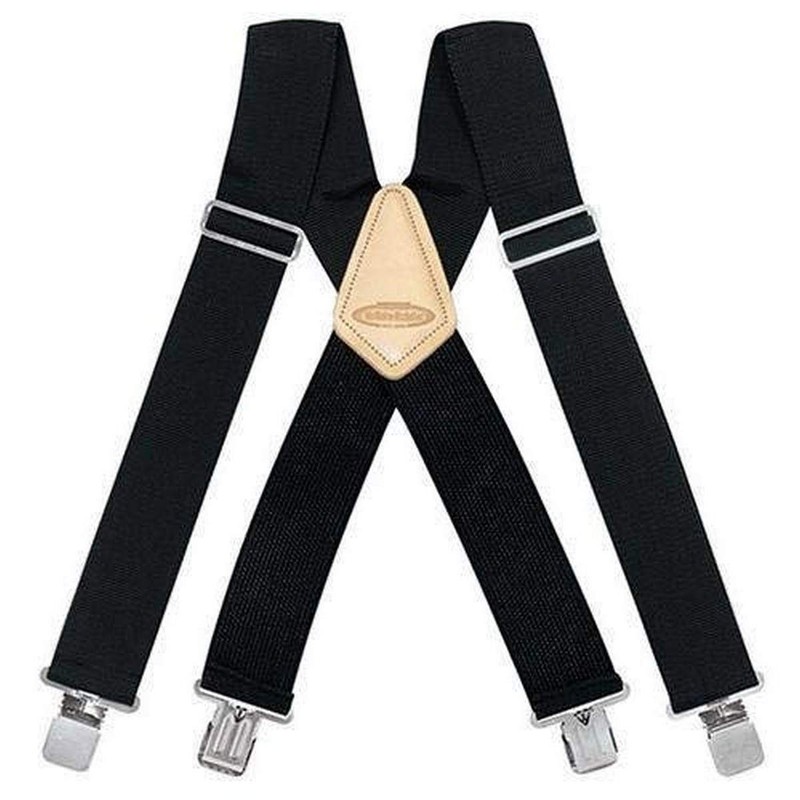 - Heavy Duty Work Suspenders. One Size Fits All. Available in colors of Red, Black, and Navy Blue
