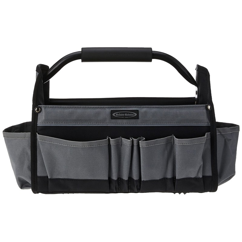 - The Mcguire-Nicholas tool tote bag with handle features a grey and black color