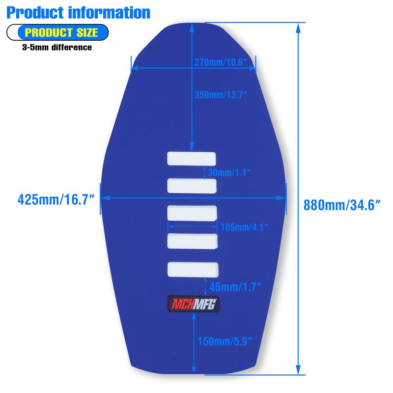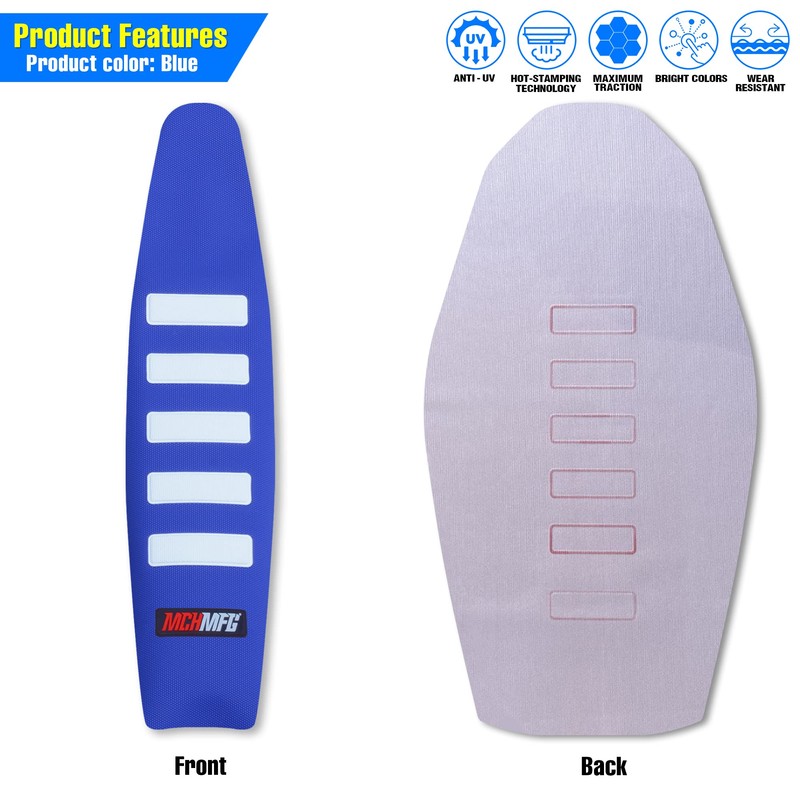 MCHMFG Motorcycle Universal Seat Cover Non-Slip Rubber Striped Gripper Soft Stamp for CRF WR WRF RMZ YZF SXF EXC EXC XC SX CR KLX Dirt Pit Bike Motocross Off Road Motorbike (Blue)