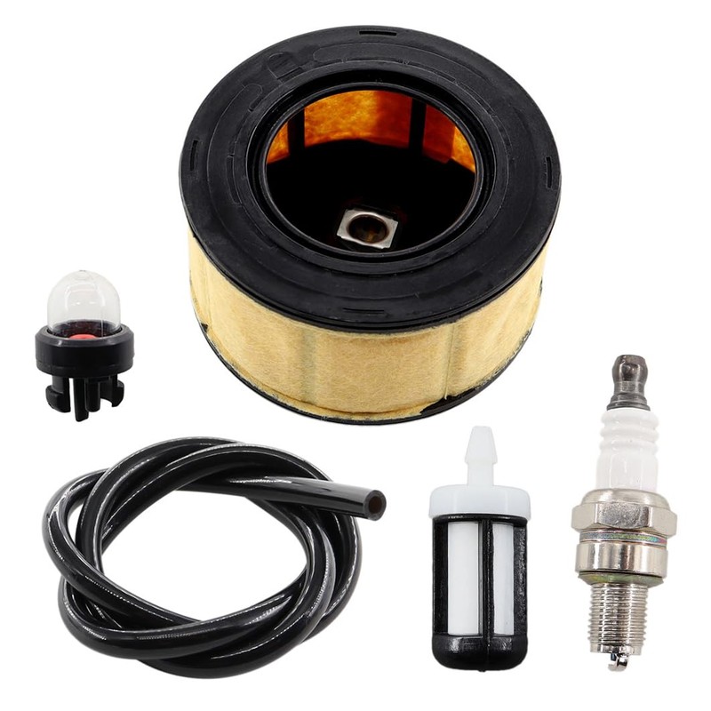 - Box contents: 1 x air filter, 1 x fuel hose, 1 x fuel filter, 1 x spark plug, 1 x primer