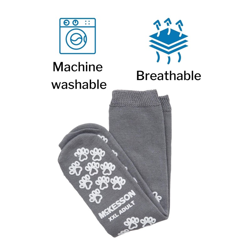 Utiliza estos calcetines McKesson de grado premium con bandas de rodadura para mantener tus pies calientes y evitar resbalones. Estos calcetines están hechos de tela de rizo suave y transpirable de alta calidad en el interior con bucles y tela de poliéster/nailon en el exterior para ofrecer seguridad y comodidad. Los calcetines antideslizantes para adultos tienen un puño y cuerpo de alta elasticidad que ofrece un ajuste cómodo, no restrictivo y seguro. La construcción de doble impresión de suela completa ofrece el máximo contacto con el piso, reduciendo los riesgos de resbalones y caídas. Estos calcetines antideslizantes de color verde azulado no tienen látex, lo que los hace adecuados para personas con alergias al látex y sensibilidad a la piel. Estos calcetines de tela de rizo Paw Prints son grandes para adultos y lavables a máquina para una fácil limpieza. Son de doble rosca para ofrecer calidez y comodidad a los pacientes en un hospital o centro de salud.