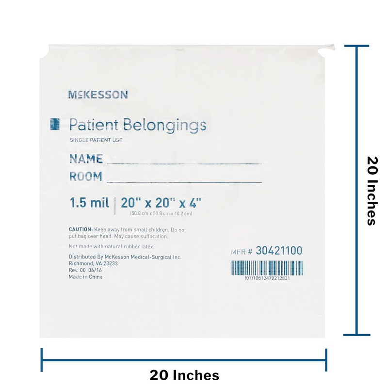 - Made from polyethylene, the 1.5 mil thickness bag is waterproof to keep patients' possessions safe from external moisture