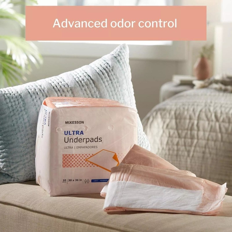 McKesson Ultra Underpads provide superior absorbency and protection for heavy incontinence. Designed with heat-sealed, non-woven edges that are gentle on skin, the bed pads for adults are made of absorbent polymer that locks away wetness while reducing the pH of urine to provide advanced odor control and promote skin wellness. They also contain no natural rubber latex, making the bed-wetting protection pads safe for patients with latex sensitivities.