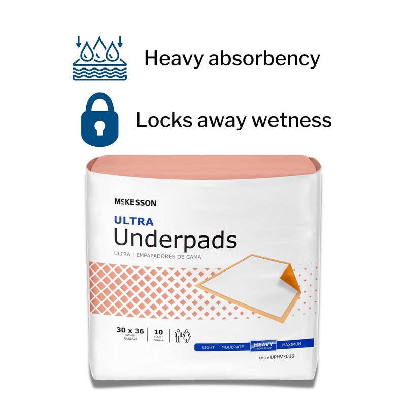 McKesson Ultra Underpads, Incontinence, Heavy Absorbency, 30 in x 36 in, 10 Count