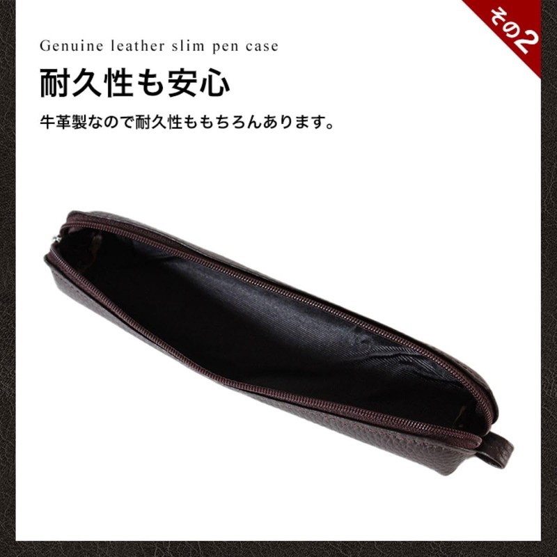 MCN003 Genuine Leather Slim Pencil Case Slim Compact Simple Business People Cowhide Grain Leather, Black, Minimalist