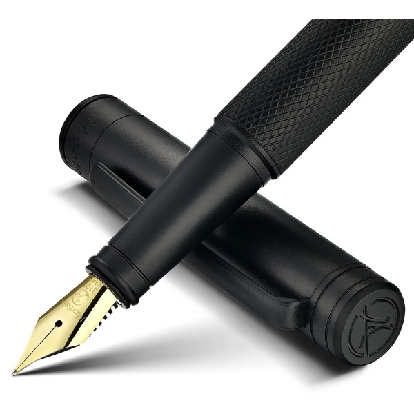 MCNTEIK Matte Black Forest Fountain Pen, 18K Gilded Nib (Medium), Best Pen Gift Set for Men & Women, Business Signature, Executive, Office, Nice Fancy Designer Pens