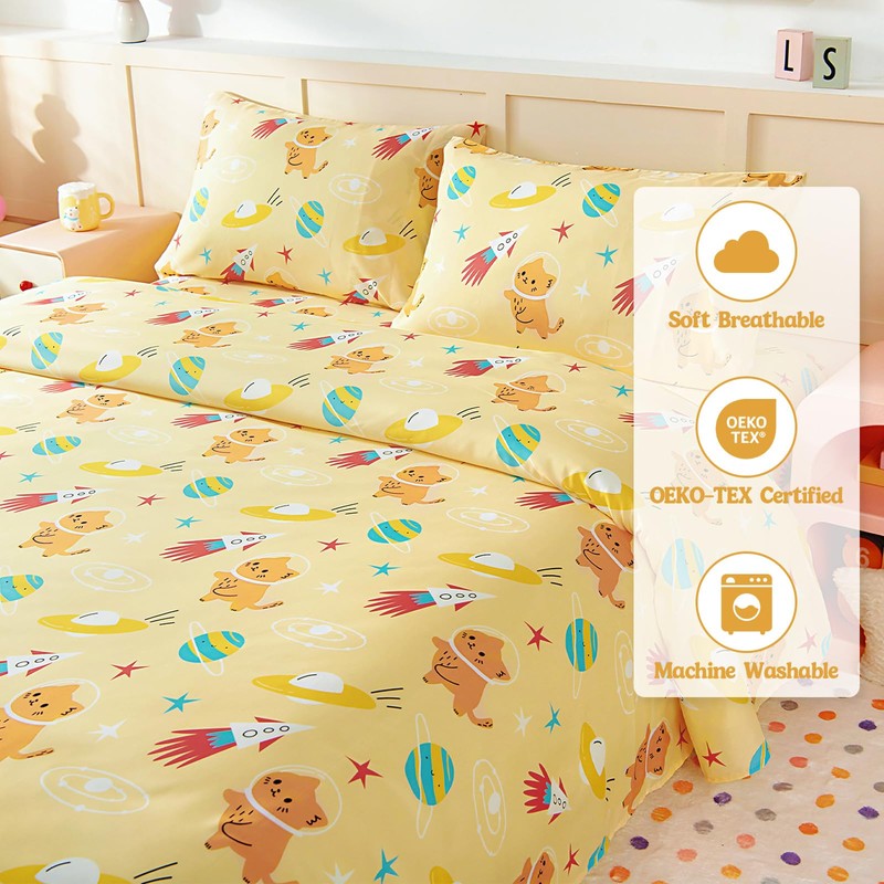 • Soft Microfiber: The full sheet set is made of high-quality microfiber,breathable and super soft touch. Filled with charming characters, soft colors, and joyful patterns, each piece is thoughtfully crafted to spark imagination and comfort