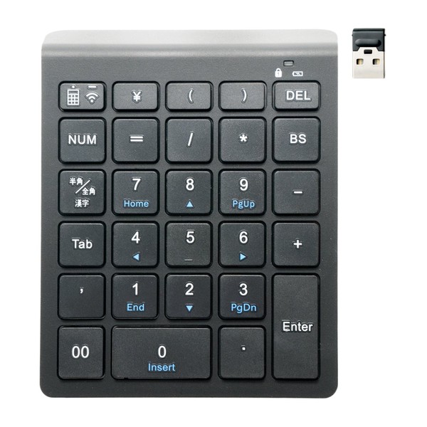 ミヨシ MCO Windows用 ワイヤレステンキー 2.4GHz接続 5列・28キー アイソレーション式 ブラック TEN24G01/BK