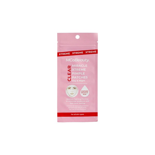 MCoBeauty CLEAR MIRACLE XTREME PIMPLE PATCHES are your first line of defence against early blemishes and the fast track for visibly shrinking stubborn spots. This pack contains 36 patches in four sizes to noticeably reduce the size and severity of breakouts – no aggressive squeezing required!