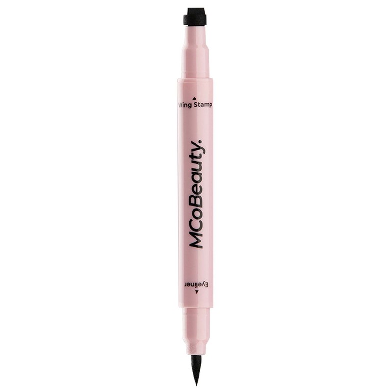 MCoBeauty MINI WINGED EYELINER STAMP & LIQUID LINER DUO is an innovative dual ended tool designed to create perfect symmetry and intense colour with each application. The felt Eyeliner Stamp delivers the perfect feline flick with minimal effort, while the Liquid Liner creates a dramatic, high definition finish.