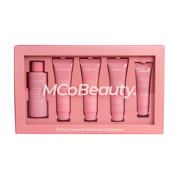 The McoBeauty Perfect Skincare Bundle is the perfect way to get your skin looking and feeling its best. What is included in the McoBeauty Perfect Skincare Bundle? Salicylic Foaming Face Cleanser (20ml) Gentle Vitamin C Exfoliating Scrub (20ml) AHA/BHA Pore Refining Exfoliating Toner (30ml) Hydrating Hyaluronic Acid & Vitamin C Serum (10ml) Hydrating Day & Night Face Moisturiser (20ml) What are the features and benefits of the McoBeauty Perfect Skincare Bundle? Salicylic Foaming Face Cleanser (20ml): Melts away makeup, pollutants, and sunscreen, leaving your skin clean and visibly brighter. Gentle Vitamin C Exfoliating Scrub (20ml): Exfoliates to remove dead skin cells, leaving the skin feeling radiant and bright. AHA/BHA Pore Refining Exfoliating Toner (30ml): The ultimate treatment for tackling blemishes on problematic skin. Hydrating Hyaluronic Acid & Vitamin C Serum (10ml): Provides immediate hydration and adds volume to the skin, creating a radiant, lit-from-within glow! Hydrating Day & Night Face Moisturiser (20ml): Provides deep hydration without any greasy sensation. Who is the McoBeauty Perfect Skincare Bundle for? The McoBeauty Perfect Skincare Bundle is perfect for anyone looking to improve the look and feel of their skin.