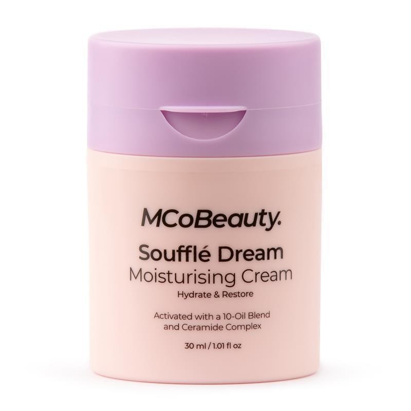 MCoBeauty SOUFFLE DREAM MOISTURISING CREAM instantly moisturises while sustaining nourishment throughout the day with its light-as-air and ultra-hydrating formula. The rich formula is soft and refreshing, with a silky and lightweight feel. Ideal for normal to dry skin, this cream will nourish your skin without ever making it feel oily. Made without nasties and enriched with skin-loving ingredients, this moisturiser can be used on its own or mixed with other serums and oils. QUICK FACTS:PROMOTES HEALTHY AND HYDRATED SKINRICH AND CREAMY WITHOUT FEELING HEAVYINSTANT BOOST OF MOISTURE WITH LONG LASTING HYDRATIONENRICHED WITH NOURISHING OILS Australia's leading luxe-for-less, vegan and cruelty-free beauty brand.