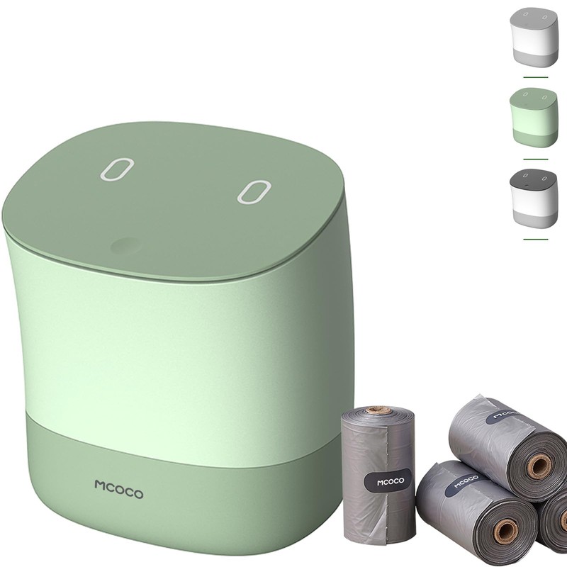 - MCOCO Mini Trash Can: Features a charming robotic-inspired panel design combined with a minimalist and contemporary aesthetic, turning this portable and compact trash can into a fashionable decoration; Offered in three color options, it is well suited for various settings such as desks, dressing tables, and bedside tables, effortlessly complementing different interior styles