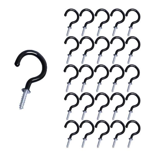Mcoser 20PCS Screw in Hooks 1-1/4 inch Metal Black Cup Ceiling Hooks for Hanging Plants,Wood Home Organization