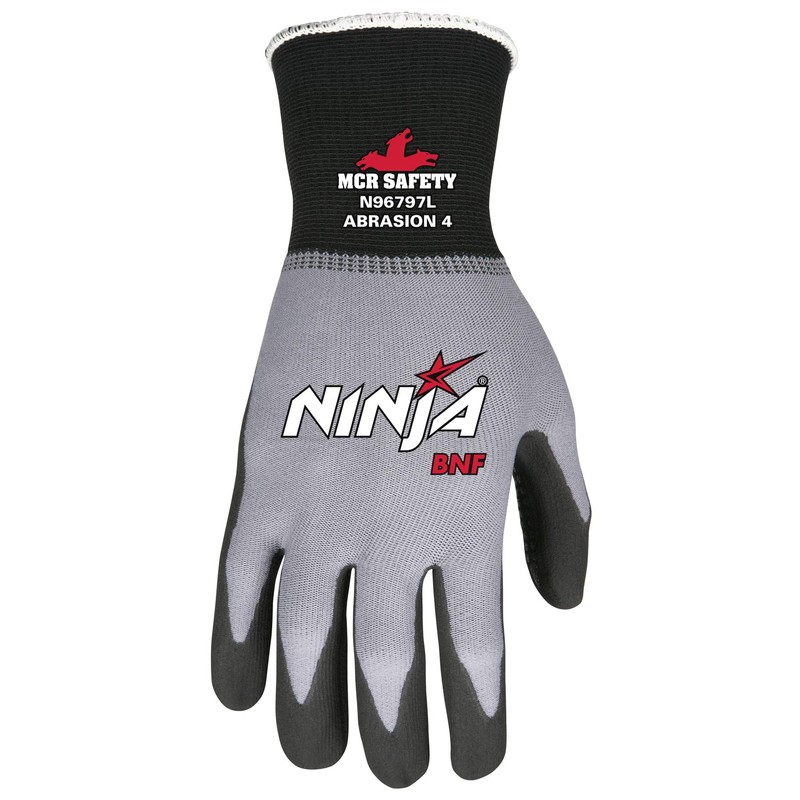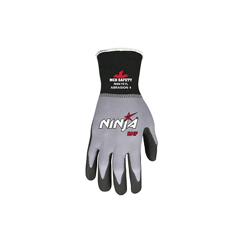 MCR Safety Ninja BNF N96797L Work Gloves, 15 Gauge NylonSpandex Shell, Breathable Nitrile Foam(BNF) Coated Palm & Fingertips with Grip Dots, Large