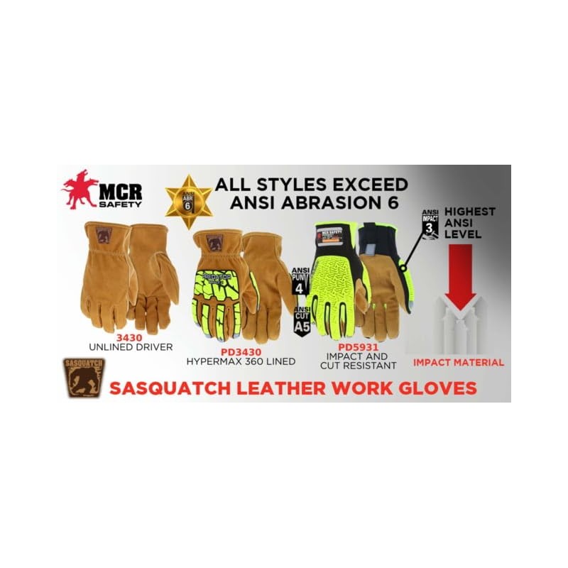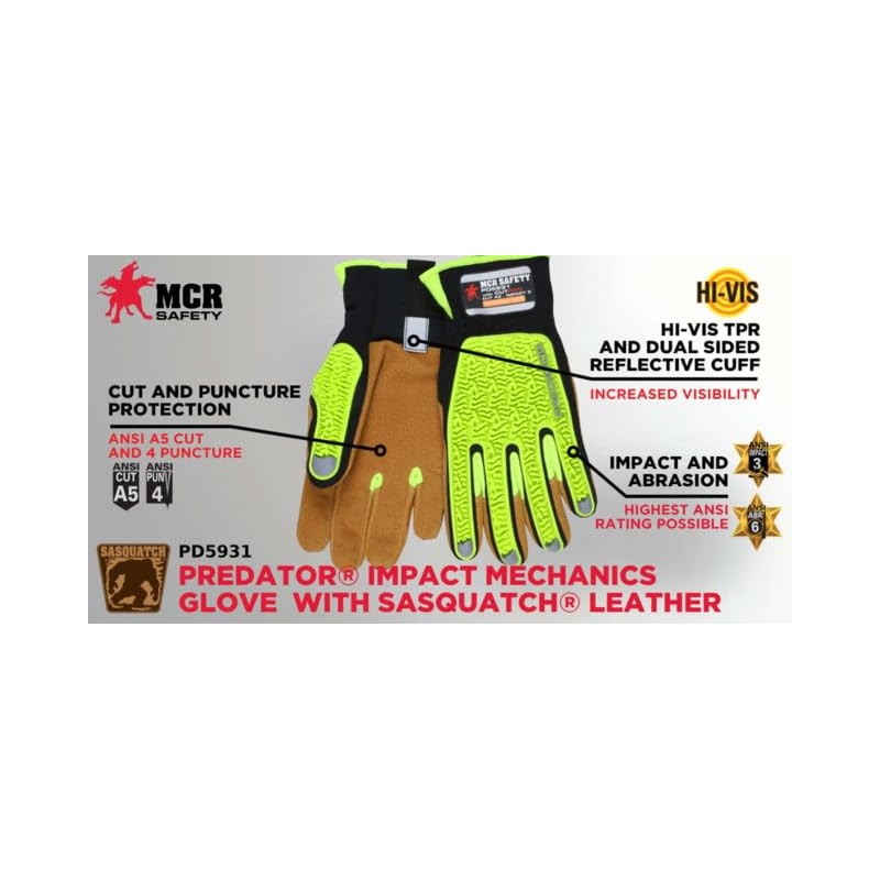 MCR Safety Predator Impact Mechanics Sasquatch Leather Palm Work Gloves, Large, PD5931L
