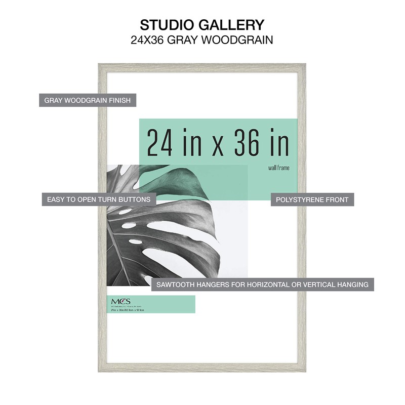 MCS Industries Studio Gallery Frame, Gray Woodgrain, 24 x 36 in, 2 pk
