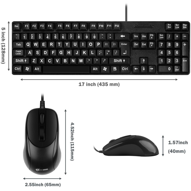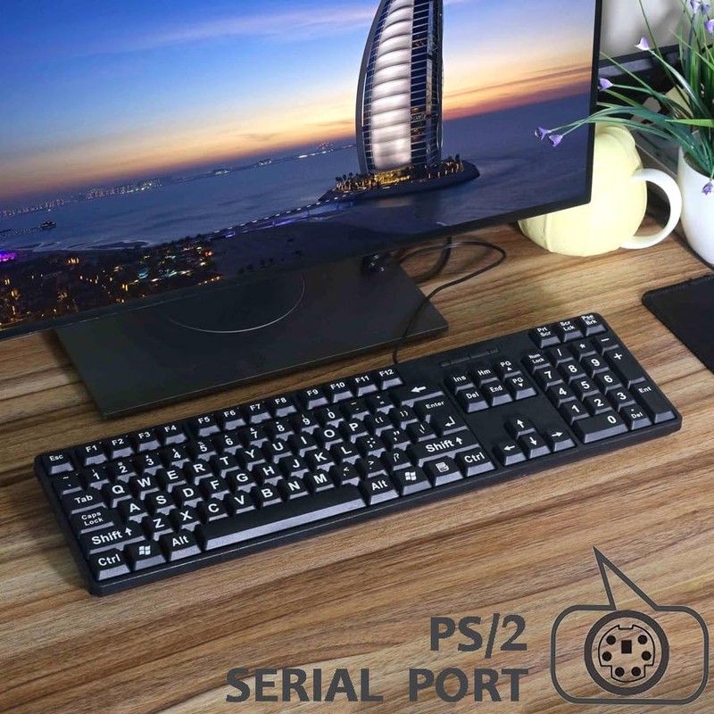 MCSaite Wired PS2 104 Keys Computer Keyboard and Mouse Combo - Big Print Letters