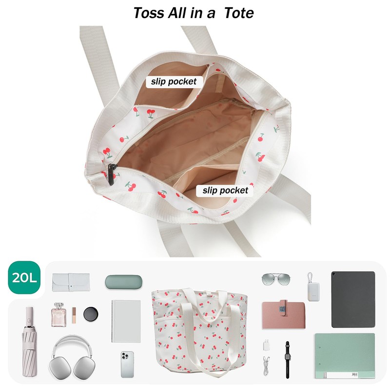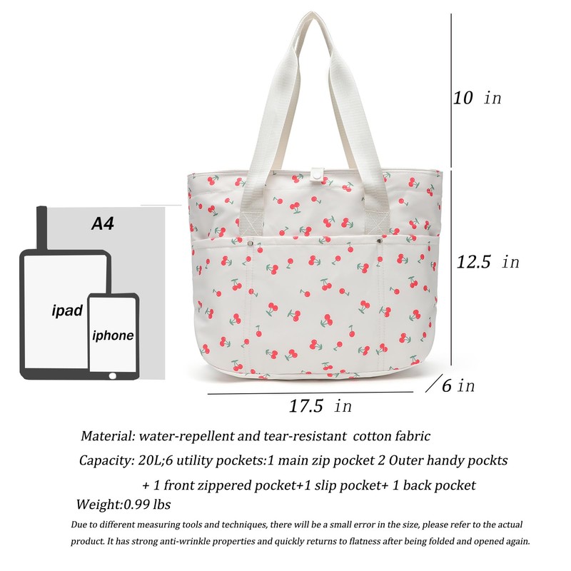 - Versatile for School, Work & College: This medium size cherry tote accommodates books, devices, and more .Ideal as a tote bag for women school college or a black tote bag for school, . Its stylish, zippered tote bag for women design ensures function meets fashion.