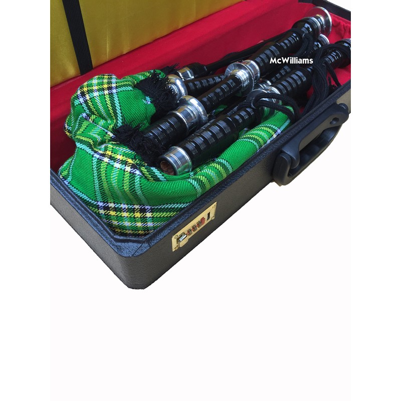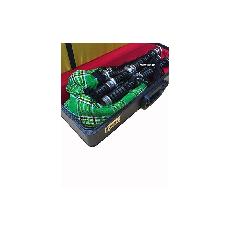 McWilliams BAGPIPE, SCOTTISH HIGHLAND BAGPIPE BEGINNER ADULT SILVER MOUNTS IRISH TARTEN HARDBOX