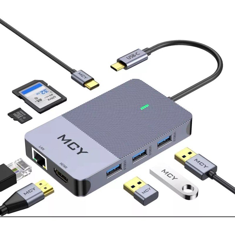 Enhance your laptop's connectivity with the MCY 8-in-1 USB C Docking Station. This versatile hub allows you to connect your laptop to multiple devices with ease. Its 1:8 connection split/duplication feature enables you to connect a single device to up to 8 devices, making it perfect for use in a busy office or home environment.