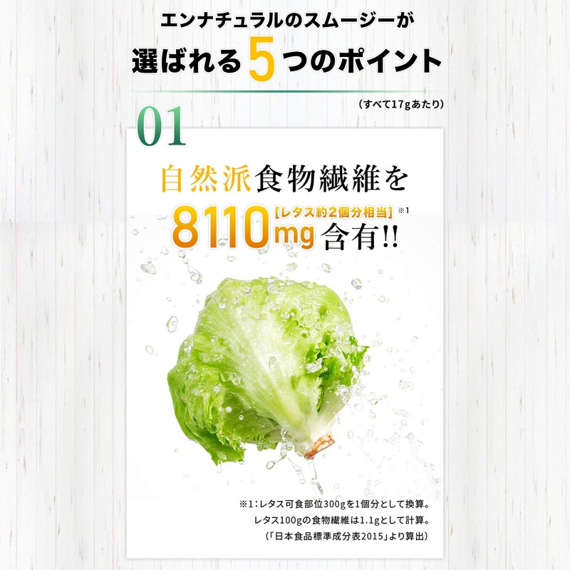 【ファスティング中でもしっかり栄養補給】自然派食物繊維をたっぷり含有。野菜不足を補うことができます。また、11種類のマルチビタミンを配合。そして厳選した100種類以上の野草・和漢植物を酵母菌、乳酸菌、麹菌を使用して発酵させた植物発酵エキスに活性型酵素をプラスしました。