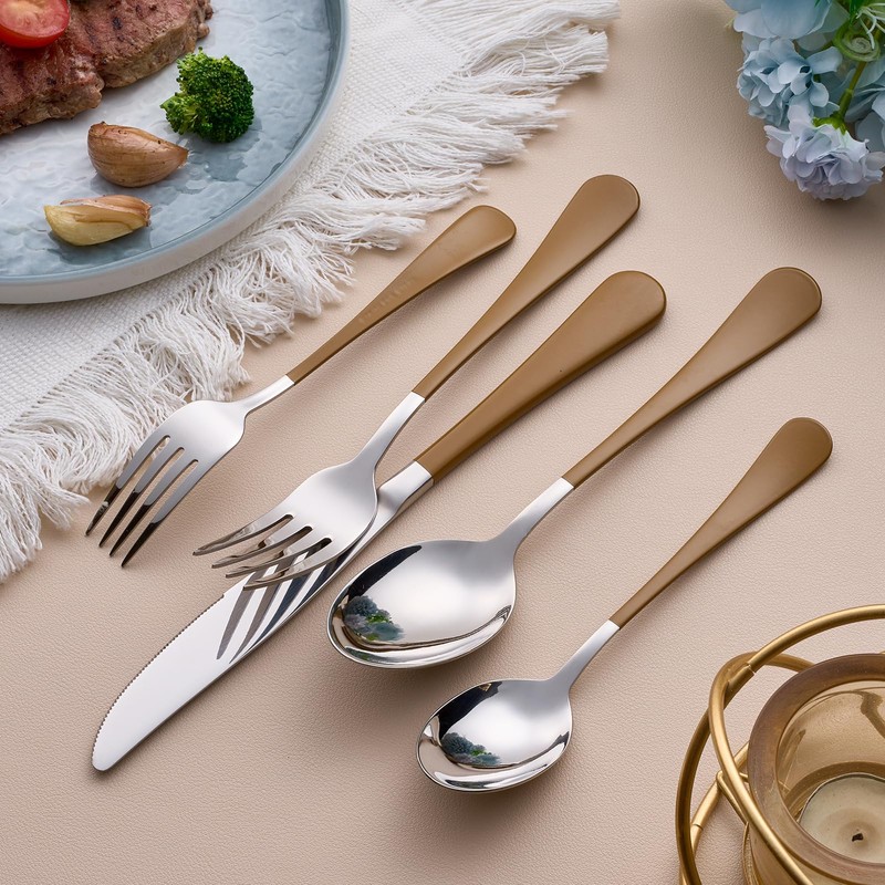 MDEALY 20-Piece Brown Silverware Set for 4, 18/0 Stainless Steel Flatware Cutlery Utensils Set, Include Dinner Knives,Dinner Forks,Dinner Spoons,Salad Forks,Teaspoons,Dishwasher Safe