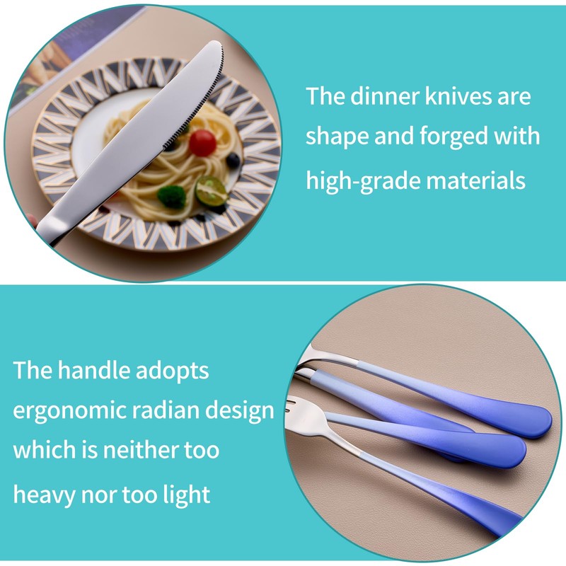 - 【Dishwasher-Safe】- The good quality silverware set never needs polishing, simply rinse and place in the dishwasher ensures time-saving convenience when it comes to cleaning and keep sanitary, your proper care can make the utensil sets always looks as good as new, and enable the beauty cutlery to last for many years.