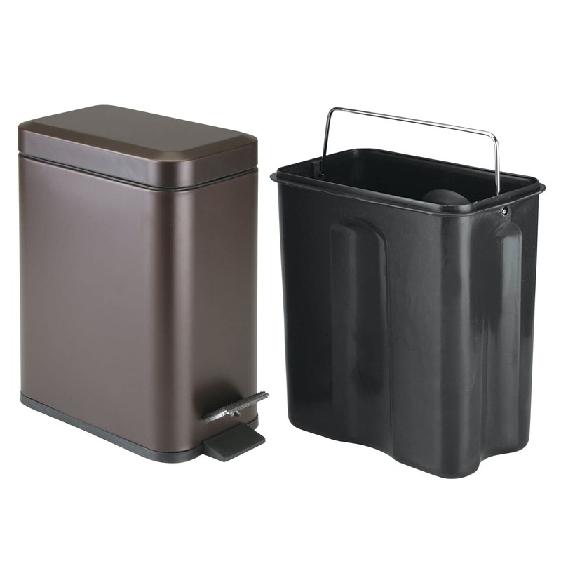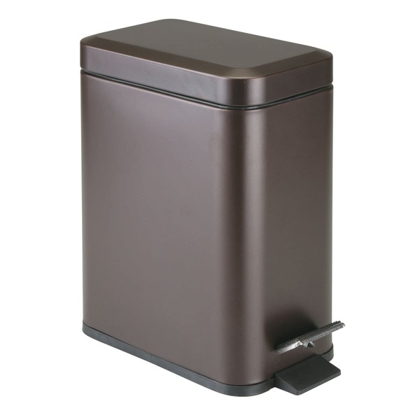 mDesign Small Modern 1.3 Gallon Rectangle Metal Lidded Step Trash Can, Compact Garbage Bin with Removable Liner Bucket and Handle for Bathroom, Kitchen, Craft Room, Office, Garage - Bronze