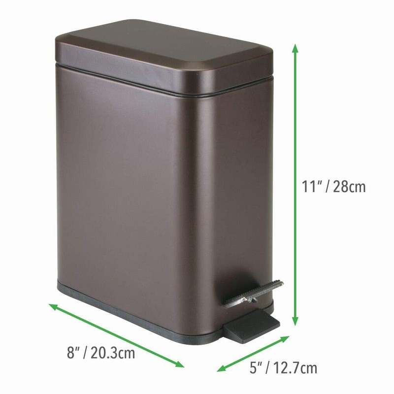 mDesign Metal 1.3 Gallon Rectangular Slim Profile Step Trash Can Wastebasket, Garbage Container Bin, Bathroom, Powder Room, Bedroom, Kitchen, Craft Room, Office - Removable Liner Bucket - Bronze