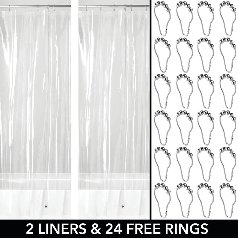 mDesign PEVA Shower Curtain with 12 Roller Hooks - Odourless Water Resistant ...