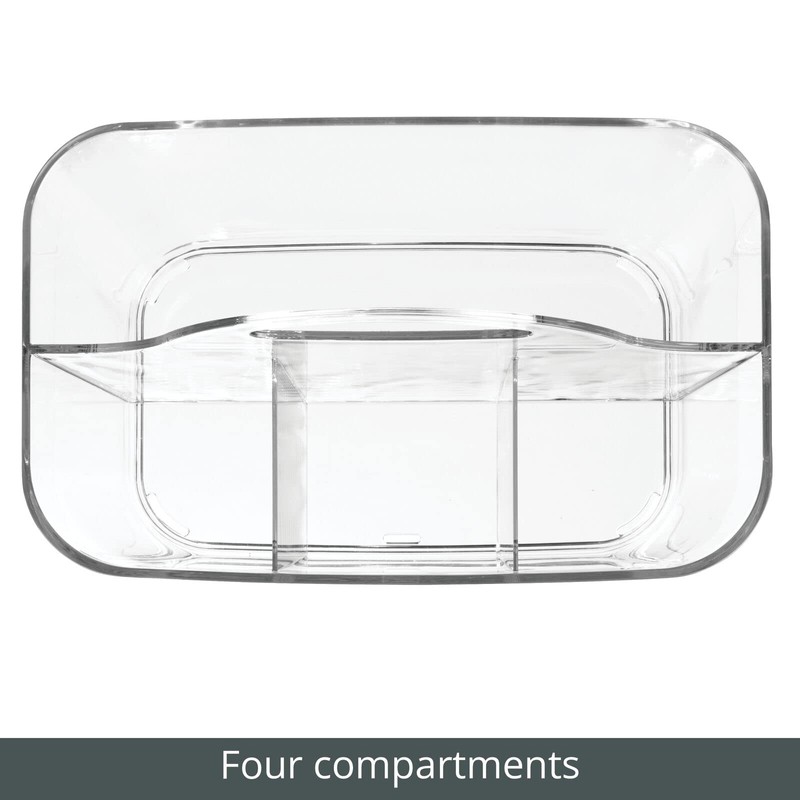 - INSTANT ORGANIZATION: Generously sized with 4 compartments of different sizes for maximum versatility; Create space-saving storage in closets, shelves, cabinets, desktops or on any work surface; Use multiple bins to create the storage solution right for you; Perfect for storing extra office supplies such as staples, highlighters, paper clips, binder clips, notepads, sticky notes, washi tape, glue sticks and more; Great for personal items, cell phones, wireless headphones, glasses; Set of 2