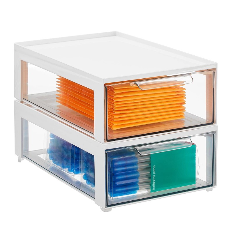 - STACKABLE: The pull-out drawer opens easily, making it simple to grab what you need quickly; The transparent construction lets you see what's inside, so you can easily find what you're looking for; The stackable design lets you maximize space by creating vertical storage; Use individually or together to create a custom storage system that works for you; Keep office items contained, organized, and dust-free; Stack them vertically to maximize your storage potential