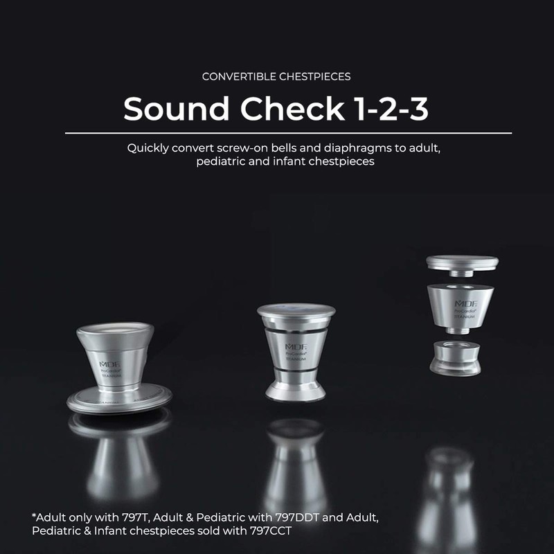 Constructed from premium-grade acoustically-superior Titanium, the MDF ProCardial Titanium Cardiology Stethoscope delivers accurate auscultation of heart, lung, and Korotkoff sounds with acoustic integrity and clarity. An ergonomic design ensures comfort for the doctor and patient, even during extended use. The ProCardial Cardiology is the ultimate diagnostic instrument with unmatched performance, durability, and aesthetics. With its extra-deep cone-shaped bell and ultrasensitive diaphragm, this cardiology stethoscope detects the entire frequency range required by cardiologists.