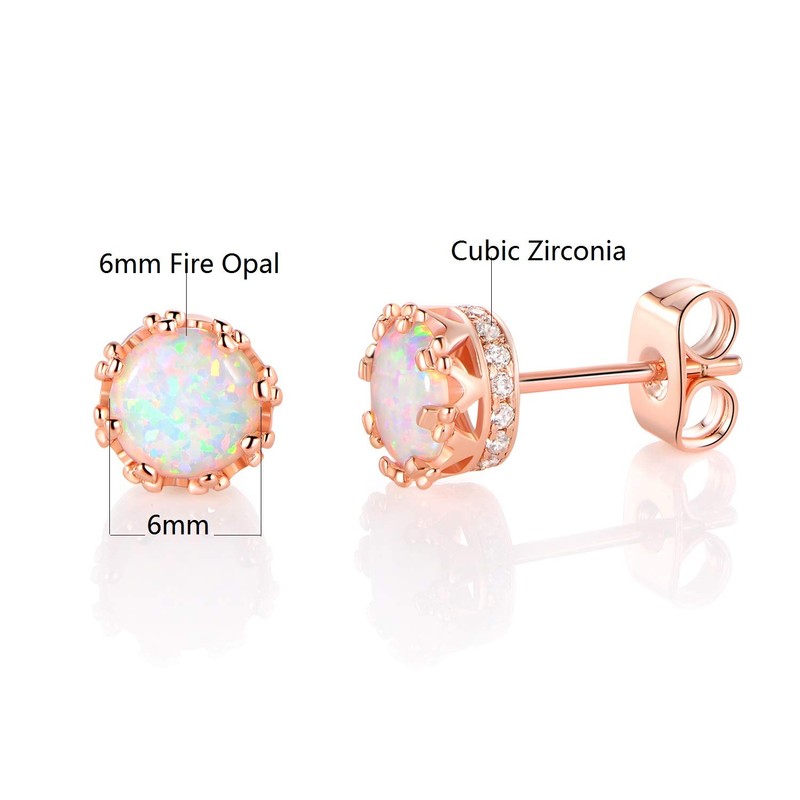 MDFUN Rose Gold Plated 6.0mm Round Brilliant Crown Opal and Cubic Zirconia Stud Earrings