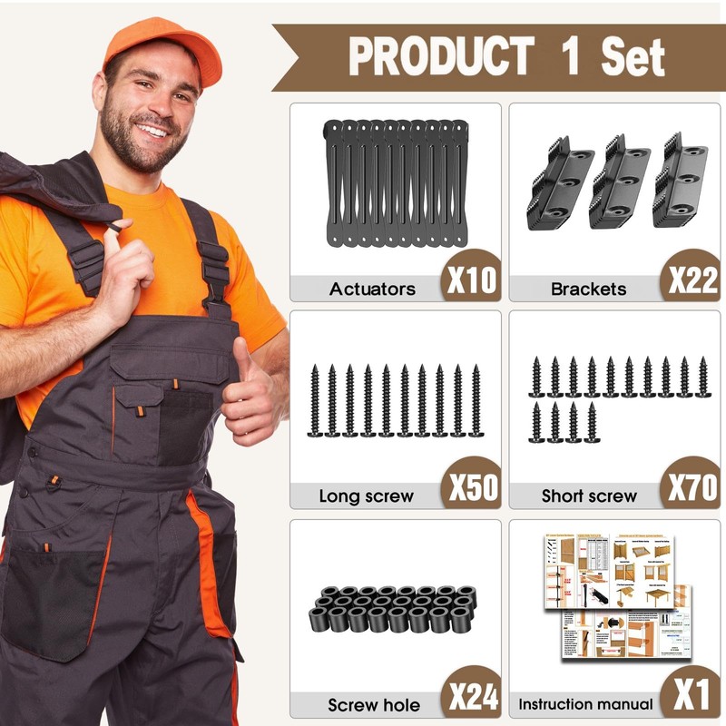 - Complete Heavy-Duty Kit: 1 Set Includes 22 Brackets, 10 Actuators, Screws & Rivets – everything needed to install up to 11 wooden slats (boards/slats NOT included). A comprehensive solution for your shutter project.