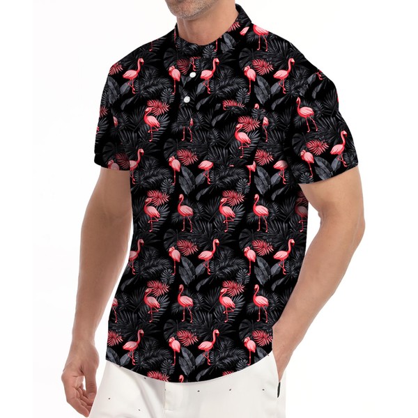 MDLBNSI Golf Shirts for Men Collarless Hawaiian Golf Shirts Flamingo Collarless Polo Shirt Flamingo Dark XL