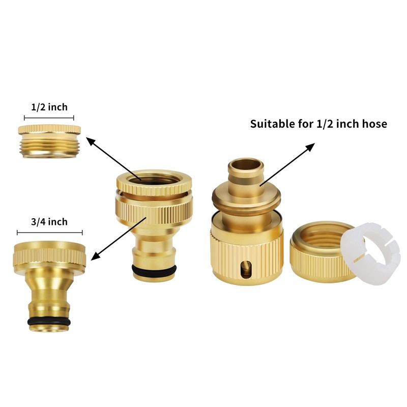Mdlufee Brass Hose Tap Connectors - 1/2 Inch & 3/4 Inch 2in1 Faucet Adapter, Quick Connector for Car Washing & Hose Connection (6 pcs)