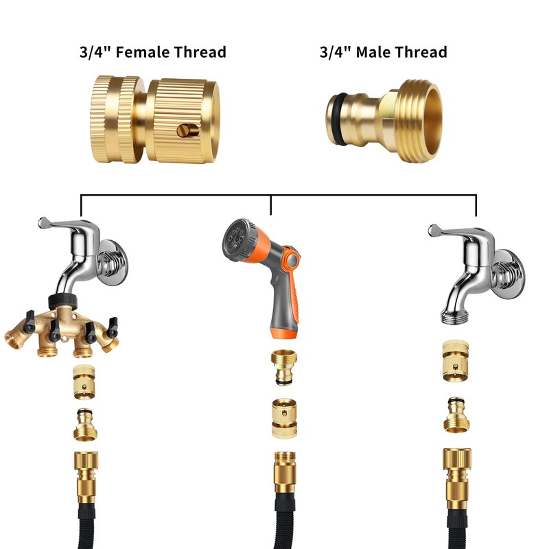 - 【SCHNELL】: Geeignet für 3/4-Zoll-weibliche Armaturen, 3/4-Zoll-Schlauchanschluss, schnelle Verbindung und einfache Demontage, einfach zu organisieren und zu speichern. Weit verbreitet in der Gartenbewässerung, dem Balkon, der die Blumen gießt, Gartenbewässerung, Waschen des Autos, Gartenbewässerung usw.