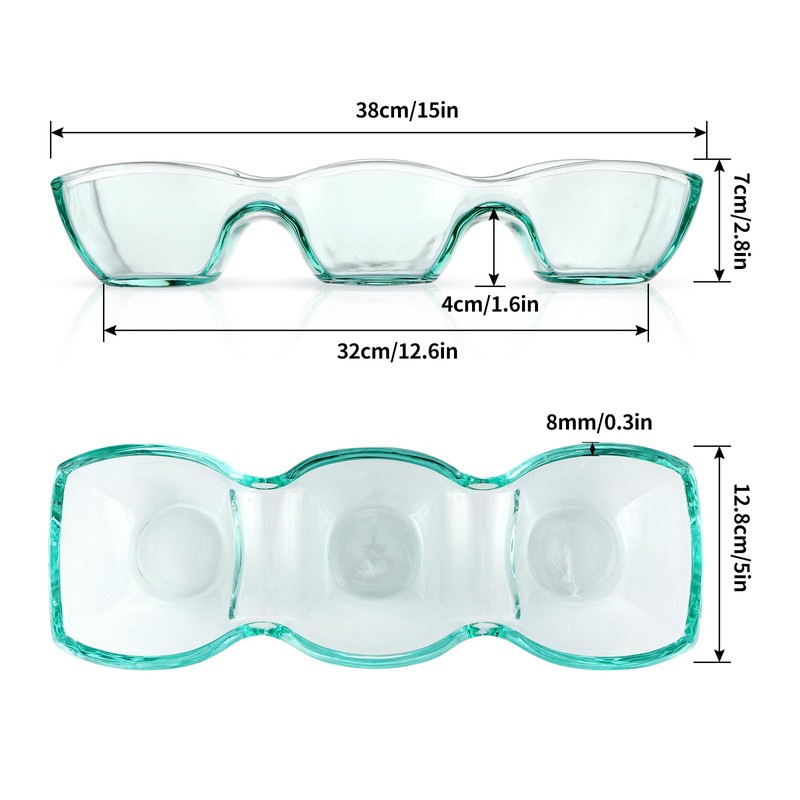 - SIZE: The triple dip bowl measures 15"(W)×2.8"(H), glass is 8mm in thickness, each weigh about 1345g, 3 bowls are the same size (Please refer to the size image for more details)
