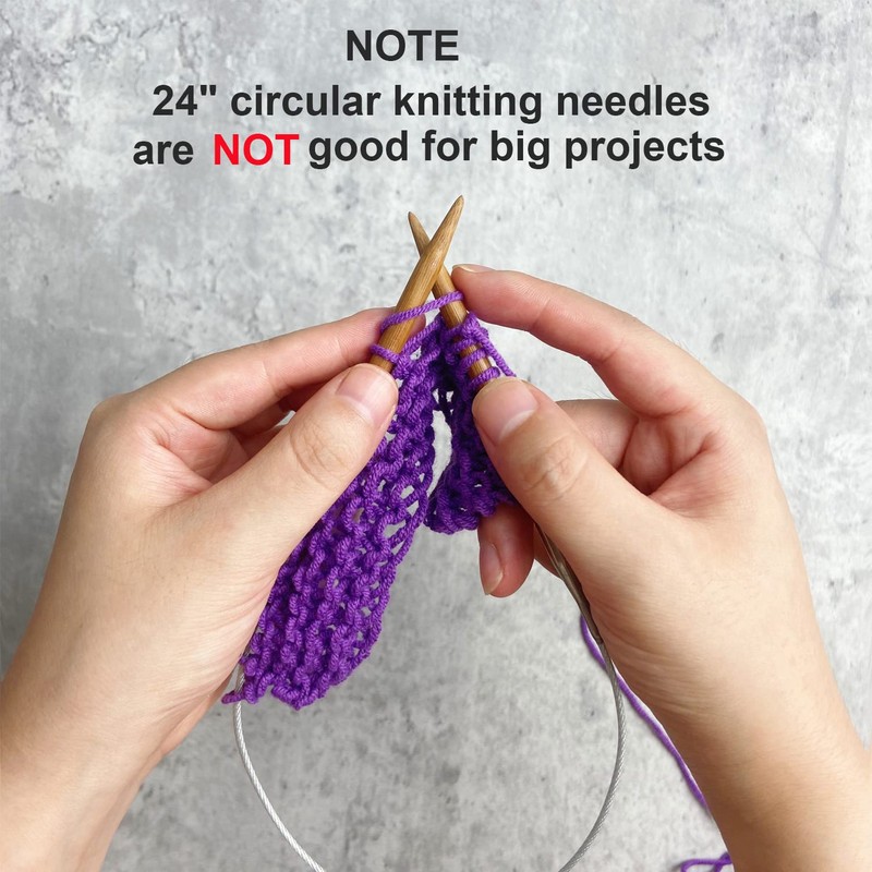 - 1 of 24" (60cm) circular bamboo knitting needles.Each needle tip length is 5.12".The cable length is 13.78".Total length is 24",suitable for small knit projects,like beanies,sleeves,hats,glove.