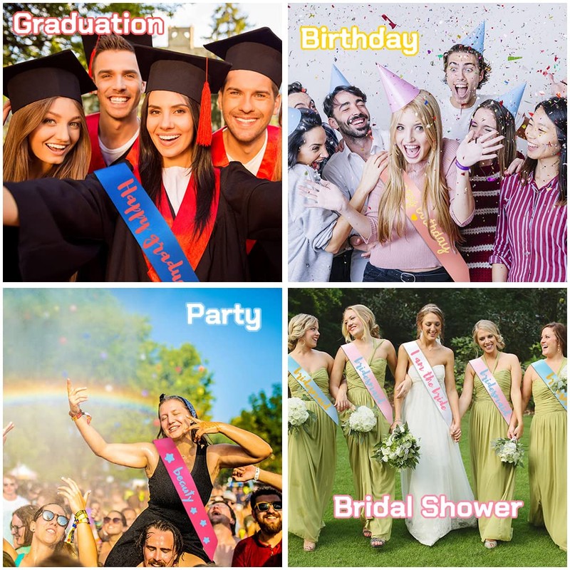 - [💃SUITABLE FOR MULTIPLE OCCASIONS💃] After creation these satin sash can be used as birthday sash, bride to be sash, bride sash, mom to be sash, bachelorette sash, graduation sash, baby shower sash, sweet 16 sash, DIY birthday sash for girls, mommy to be sash for baby shower, for birthday, wedding, graduation, beauty pageant, bachelorette party, hen party, homecoming, bride sash bachelorette party and any other parties and events.