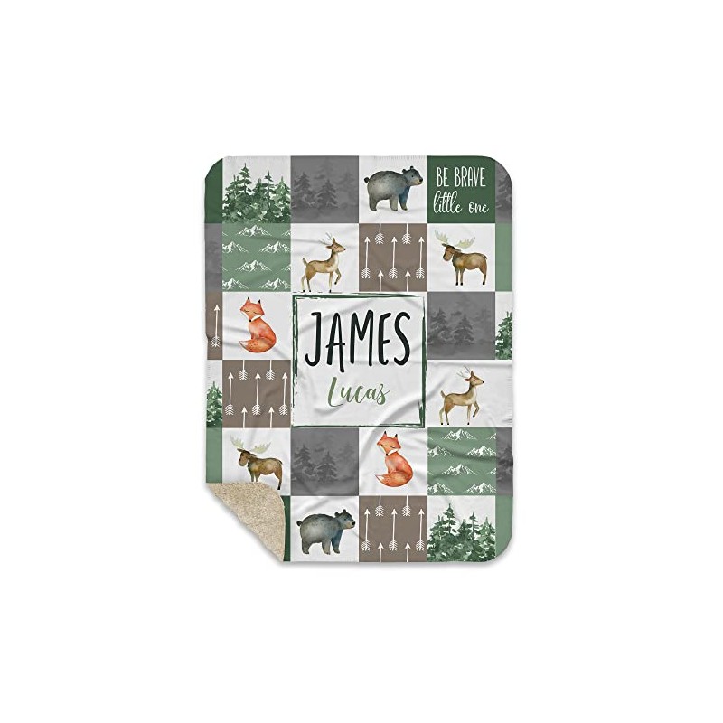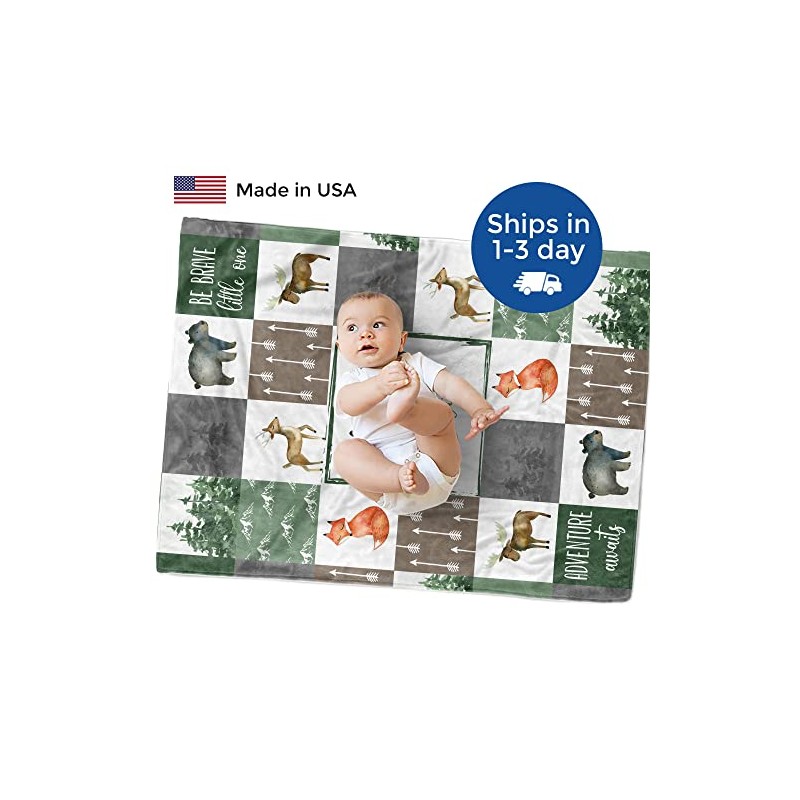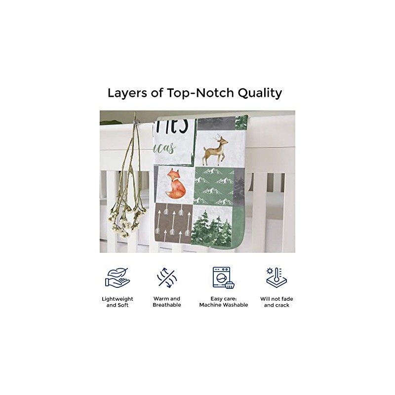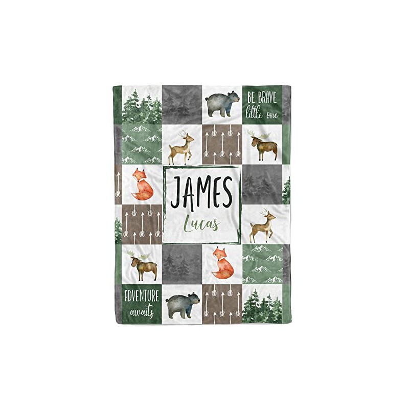 MDPrints Global MDPrints Personalized Baby Blankets for Boys - Customized Baby Blanket with Name - Newborn Nursery Gift - Soft Plush Fleece (Woodland 214)