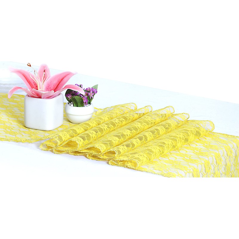 MDS Pack of 10 Wedding 12 x 108 inches Lace Table Runner for Wedding, Decorations for Birthday Parties, Banquets, Graduations, Engagements, and Runners fit Rectangle, Round Table- yellow
