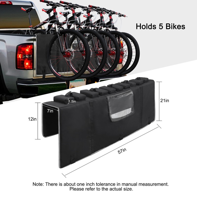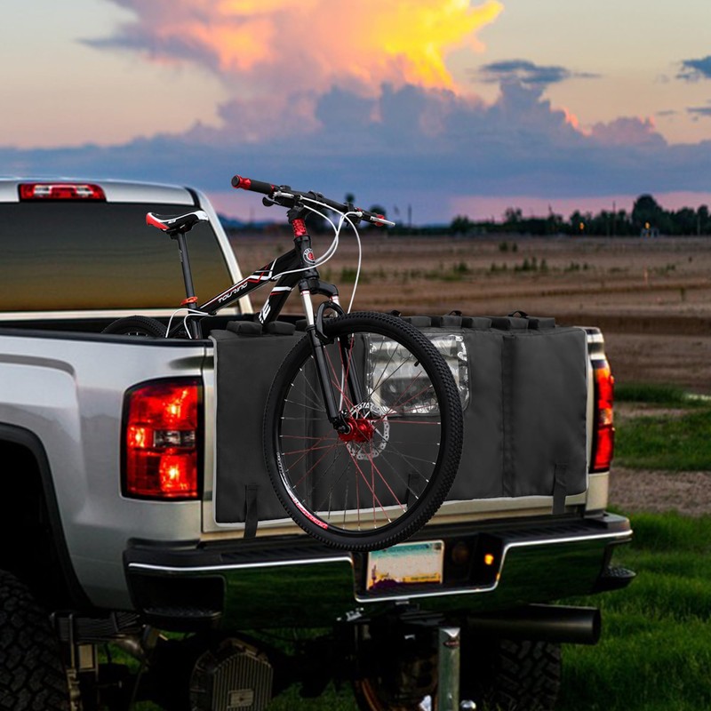 - 【Easy to Install】- This tailgate pad is a universal pickup truck rear mat, suitable for all kinds of pickup trucks and can stably carry 5 bicycles. Simply place the mountain bike tailgate pad on the tailgate and secure the tailgate pad to the tailgate with the extended fixing strap. Our straps are reinforced with stitching, enhancing the pad's stability and durability