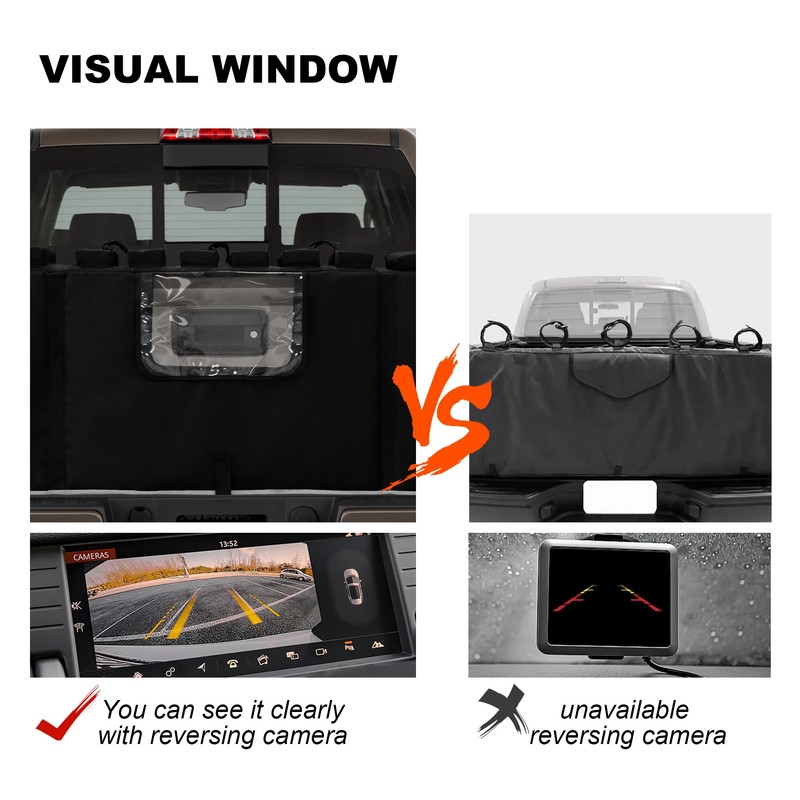 【Practical Design】- Two flip-top tool bags can provide rain protection and prevent tools from being lost during driving, and the large-capacity pockets can make the bike mat more suitable for storing tools when going out. The rear opening window design allows easy and unobstructed access to the tailgate handle and rearview camera. Our Tailgate Bike Pad has been upgraded with a visible rear opening window. When reversing on a daily basis, reversing is safe and unobstructed