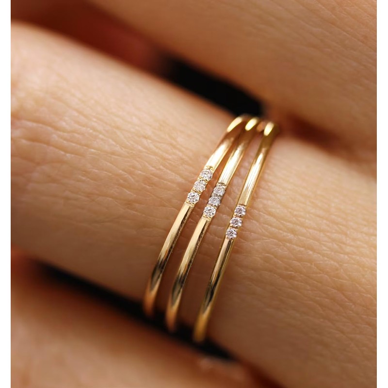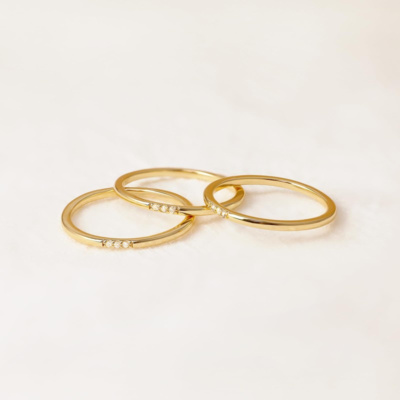 - 1mm Gold Ring:Looking for a super thin, easily stackable ring to wear everyday? Meet our 14k yellow gold plated rings with triple cz stones. This ultra-thin gold band ring can be worn as stacking rings, thumb ring, pinky ring, midi ring, etc