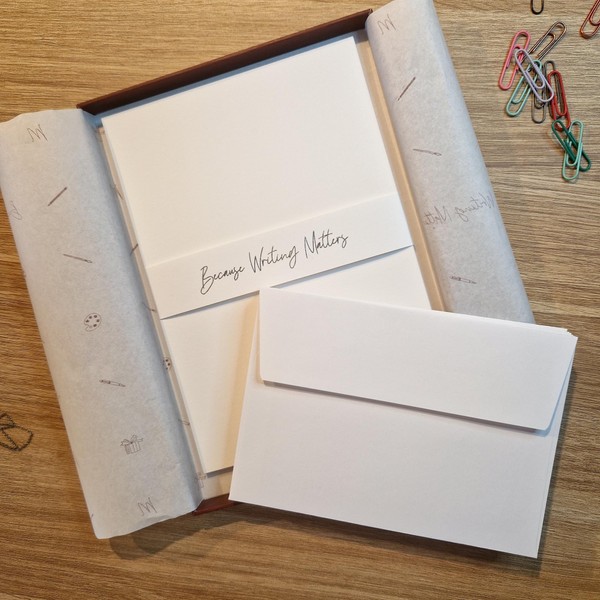 - WITH GIFT BOX --- This writing set includes 18 x letters and 18 x envelopes. Supplied in a beautiful luxury gift box wrapped inside in tissue paper. Writing set with envelopes, writing paper and envelopes, letter paper and envelopes sets.